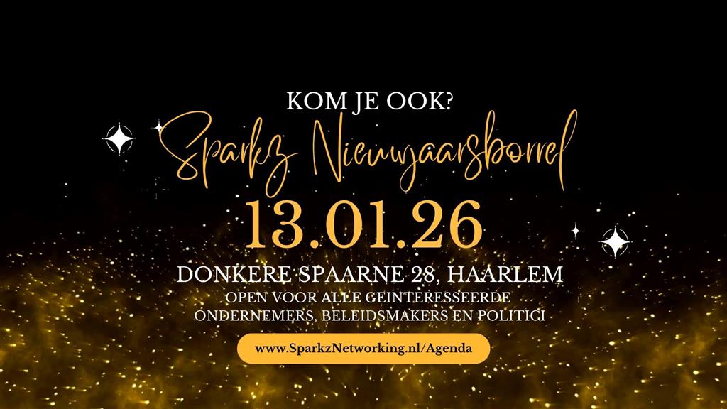 13-1-26: Bruisende Sparkz Nieuwjaarsborrel bij Donkere Spaarne 28, Haarlem - aanvang 17.30 uur.